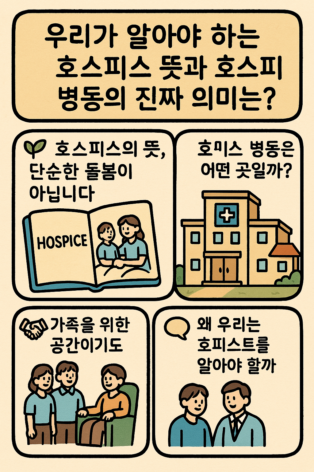 가족 중 누군가 중증 질환이나 말기 암을 앓게 되었을 때, 우리는 ‘호스피스 병동’이라는 단어를 종종 떠올립니다. 그러나 호스피스의 정확한 의미와 병동이 어떤 역할을 하는지 아는 사람은 많지 않습니다.