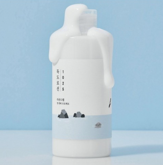 ‘독도로션’은 라운드랩(Round Lab)의 대표 라인인 독도 라인의 보습 로션입니다. 경상북도 울릉도·독도 해역의 청정 해양심층수를 원료로 사용해 민감하고 예민한 피부도 부담 없이 사용할 수 있는 점이 큰 장점이에요.